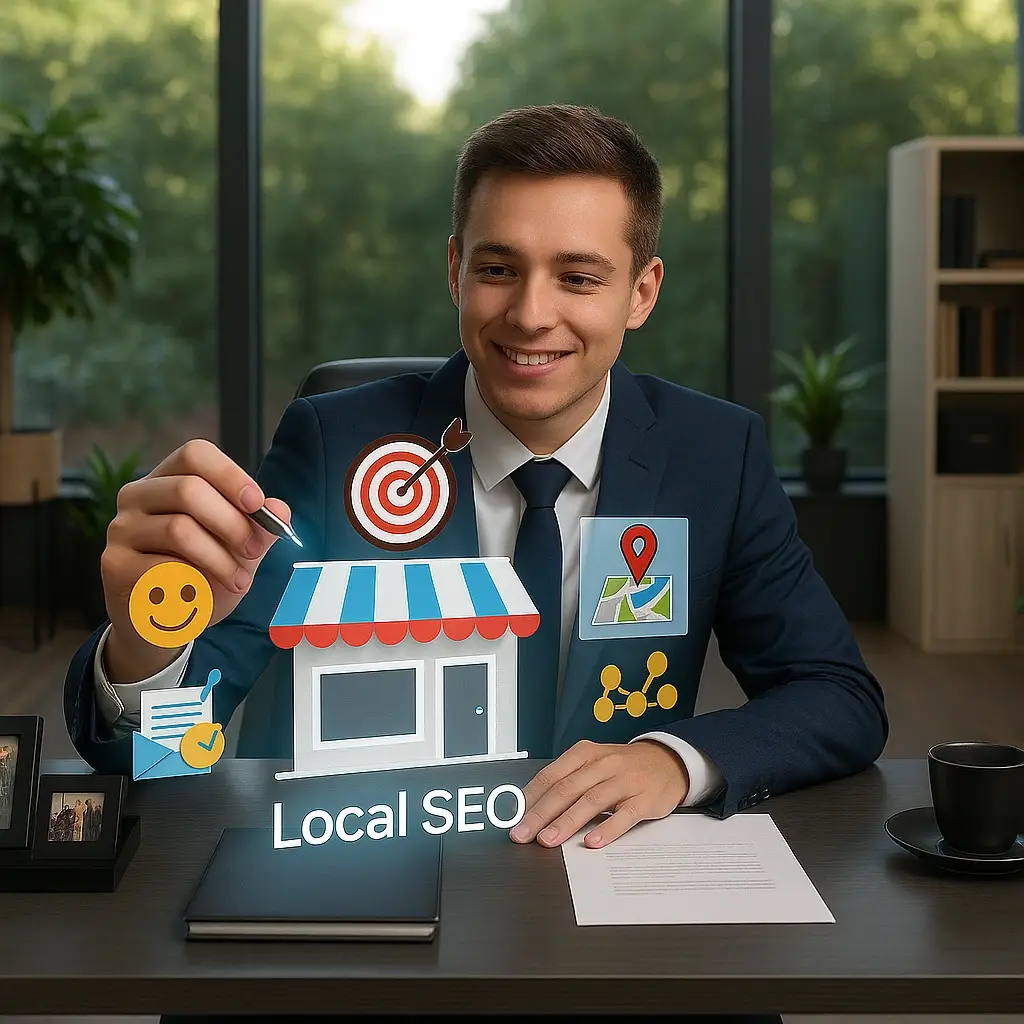 Local SEO means making your business more visible in your town or city when people search online. Think of it like this: if someone types into Google something they need and your shop, firm, or service is close to them, local SEO helps you appear in those local search results.